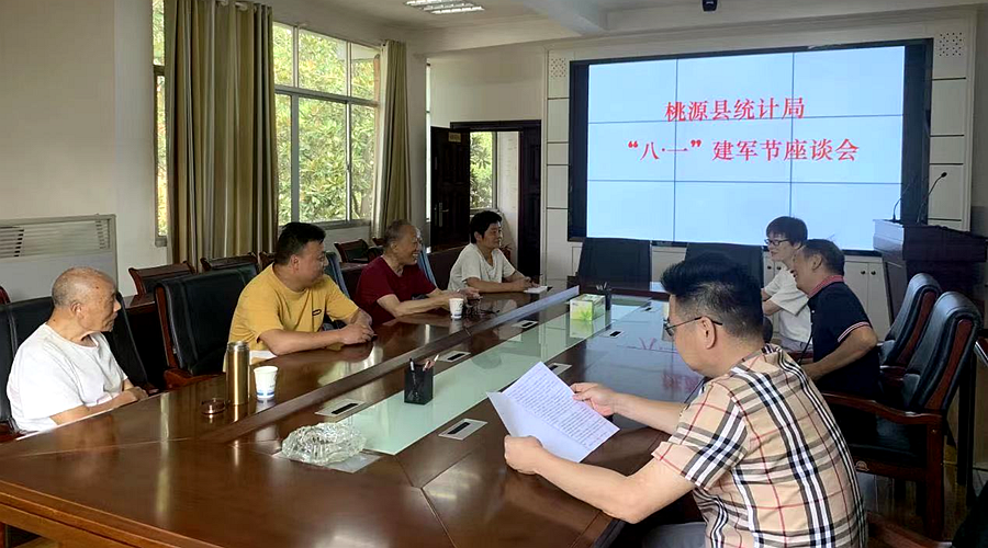 为庆祝中国人民解放军建军96周年,激励退役军人不忘初心、牢记使命、永葆军人本色,8月1日,桃源县统计局组织召开“庆八一”复员转业军人座谈会,参加此次座谈会的有县统计局班子成员、退休和在职的退役军人。