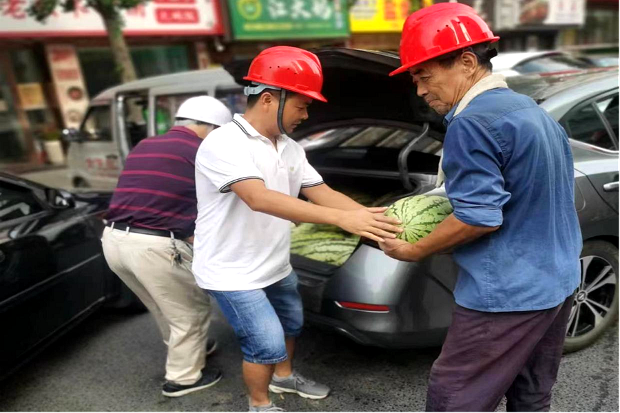 在湖南省华兴诚信建筑有限公司党支部书记熊永柏的带领下,支部党员志愿者们将西瓜、矿泉水、防暑药品等物资,一一送到建筑工人们手中,并向他们宣传高温期间劳动保护各项注意事项,叮嘱大家在高温天气下做好防暑降温工作,注意饮食,多喝水,合理安排工作和休息时间,切实保护自身安全和身体健康。