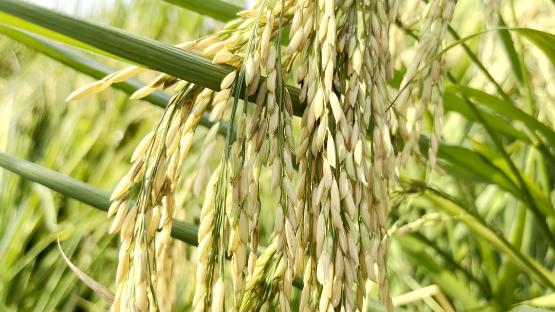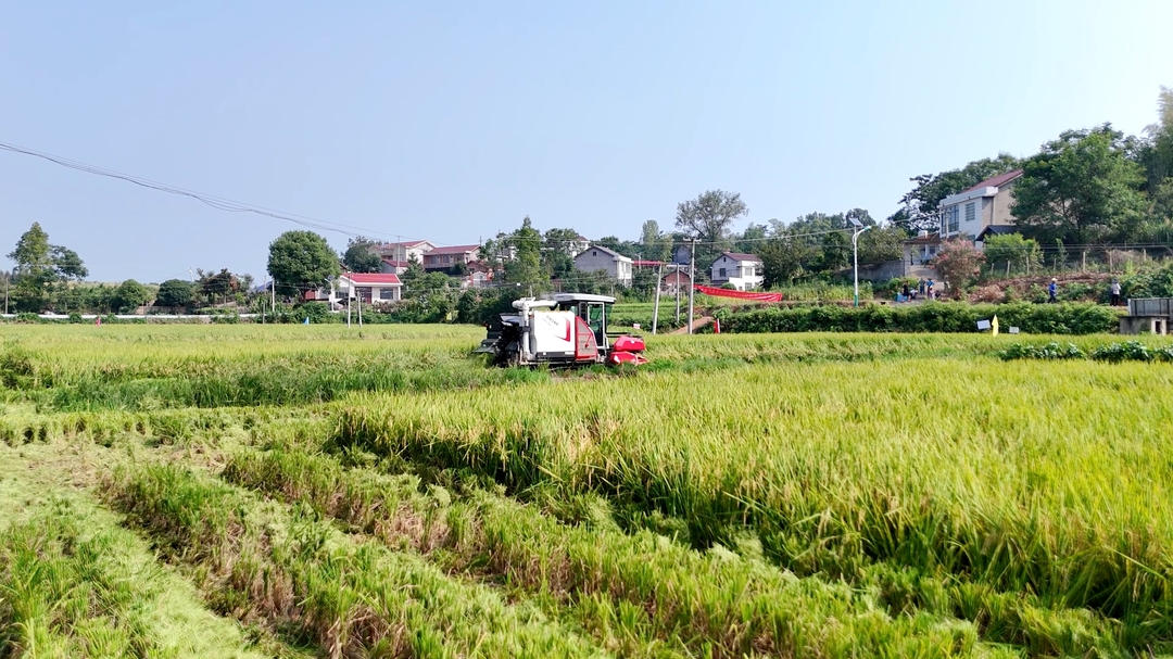 示范田总面积 200 亩,种植的再生稻品种为爽两优111,具有抗高温、抗病虫害、抗倒伏、结实率高等特点。再生稻是指一种两收,即播种一次能够收获两茬的水稻种植方式。“种二收三”是指“再生稻+油菜”轮作模式,再生稻头季和再生季收割后再冬作油菜,一年之内可实现种两季作物,收获两季稻谷和一季油菜籽共三批收成。这种“再生稻+油菜”无缝衔接的模式,让湘北地区一年收获“稻-稻-油”三季作物成为可能。