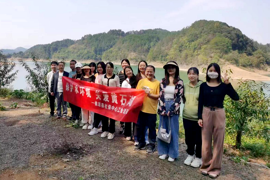 近日,桃源县社保中心工会会员们来到美丽的黄石水库开展“保护水环境 关爱黄石湖”为主题的工会活动。