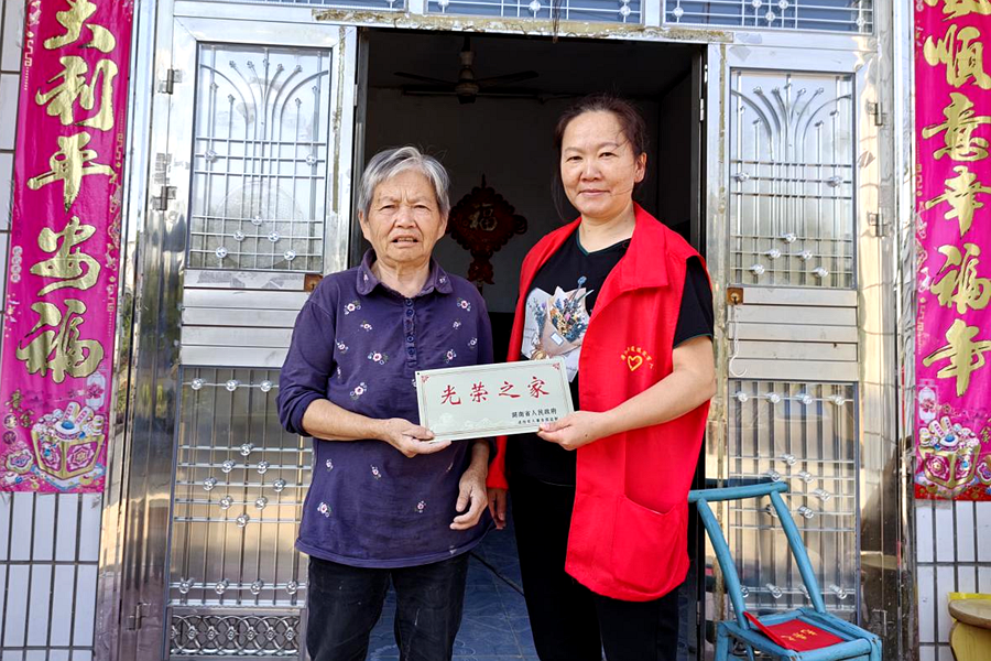 将一块块“光荣之家”的金色牌匾送到军属家中,共享荣誉与喜悦,并向军属详细询问了解家庭生活和工作情况,嘱咐军属有困难及时与社区联系。在对军属们表达崇高敬意的同时,希望军属勉励新兵扎根部队、勇立新功,为国防和军队现代化建设作出的贡献,为家乡争光,为祖国添彩。看到闪闪发光的“光荣之家”牌匾挂在自己家上,一位入伍青年的父亲表示:“光荣牌既是荣誉,更是责任,我家的孩子绝不辜负家门上的那块光荣牌,在部队里报效国家,贡献力量。”