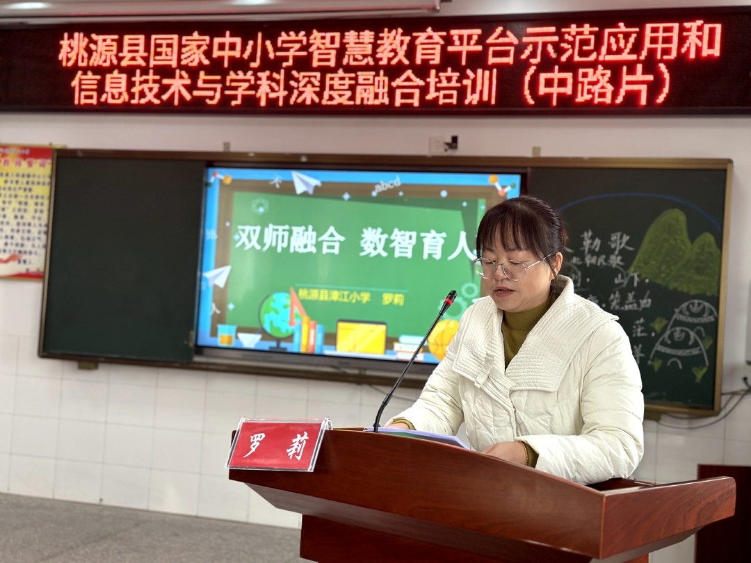 随着国家中小学智慧教育平台应用推广的全面铺开,桃源县漳江小学的老师们在这项工作上迈出了他们坚实的步伐,成为桃源教育数字化的一面旗帜。11月27日至12月1日,该校九名优秀教师受邀作为桃源县国家中小学智慧教育平台示范应用和信息技术与学科深度融合培训的培训师,踏上了走进桃源县东、西、南、北、中五个教学片区的征程,分享并推动平台八大应用场景的深入应用,参加培训的教师达千余人。