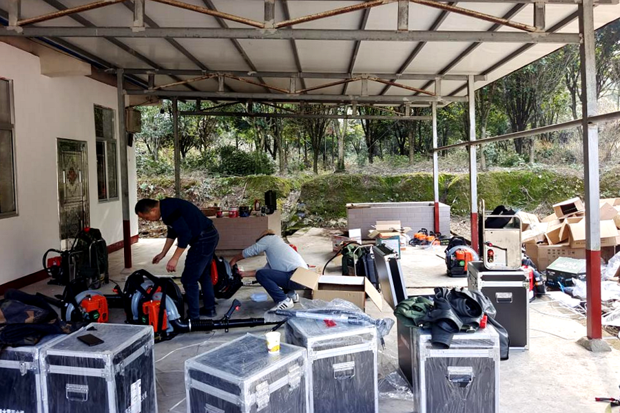 此次新购置消防器材包括电动油锯、风力灭火机、消防铲、割灌机、灭火拖把、电动水枪、消防服和防护头盔等18种共计 545件。在入库现场,黎凌旭现场调度局保护科、各分局工作人员对新装备的数量、型号进行登记、测试,并进行了统一入库。