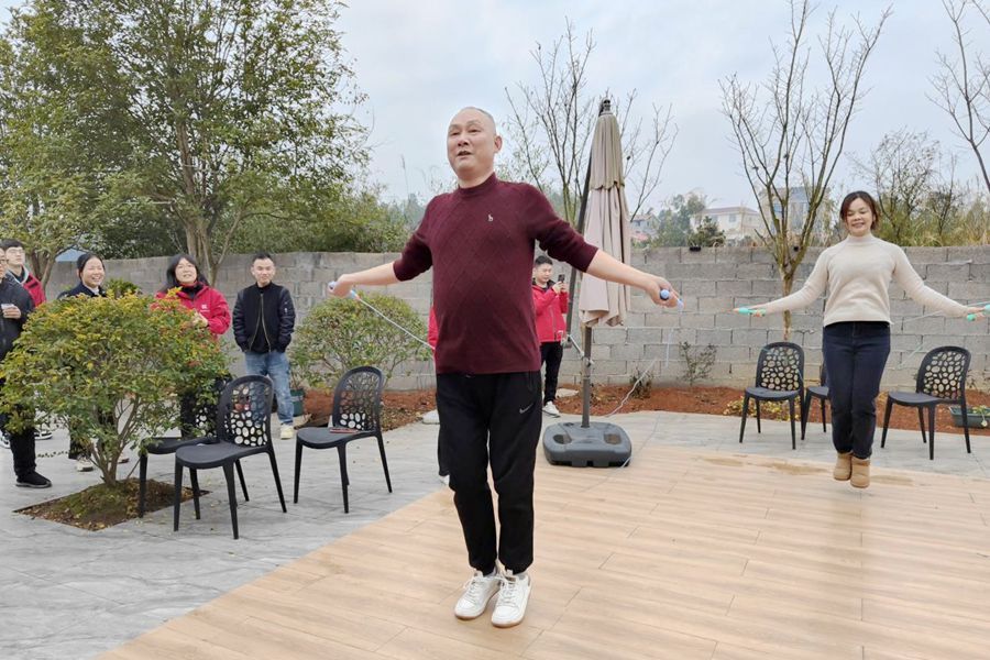在热火朝天的讨论声中,首先进行了跳绳比赛,大家脱掉“累赘”的棉服,撸起袖子,轻装上阵,让沉睡的细胞动起来,报数声、欢笑声充斥在整个活动场地,暖意在跳动间不断升温,忙碌在运动间得到释放。