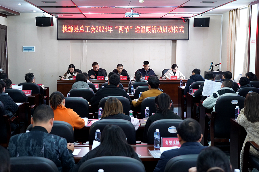 为认真贯彻落实党的二十大和中国工会十八大精神,竭诚服务职工,切实做好冬送温暖和关心关爱新就业形态劳动者,近日,桃源县总工会举行2024年“两节”送温暖活动启动仪式。桃源县人大常委会副主任、党组副书记、桃源县总工会主席杨智斌出席活动并讲话,桃源县总工会党组书记、副主席张俊主持会议,桃源县总工会班子成员、各基层工会联合会、直属工会负责人参加此次活动。