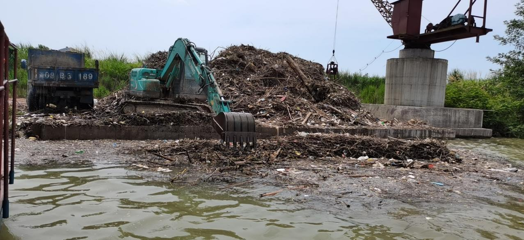 在清理现场,工作人员身穿救生衣,驾驶垃圾打捞船,采用专业用具,对沅水桃源县城段河道内的白色垃圾、塑料袋、水草等进行了清理,并对打捞出来的漂浮杂物及岸边垃圾立即清运,防止对河道造成二次污染。本次打捞工作分三天完成,于4月12日结束。