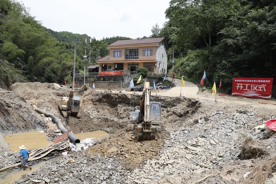 茶庵铺镇李梓溪村水毁公路加速建设中