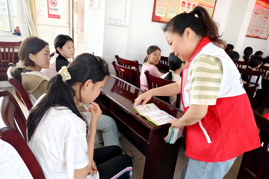 活动中,巾帼志愿者们还发放了《中华人民共和国未成年人保护法》等宣传折页。