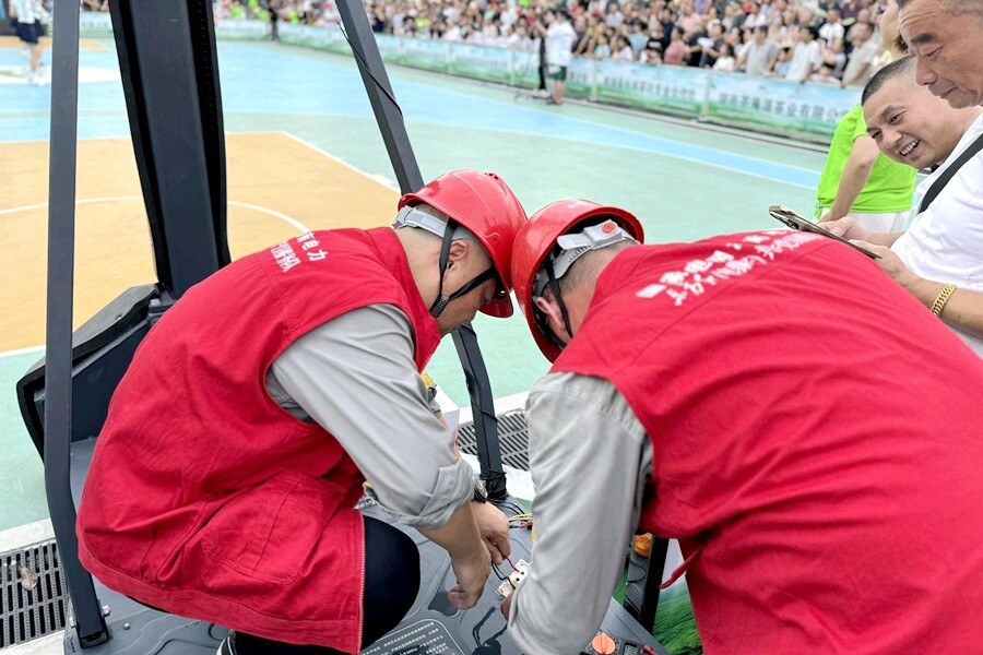 开幕式当天,夕阳西下,“红马甲”已完成第三次全面检查。“应急发电机油料加满,线路切换装置调试正常!”随着检查收尾,赛场灯光骤然亮起,将球场照得如同白昼。大鼓表演激昂震天,“篮球宝贝”舞姿欢快,乡亲们举着手机记录热闹瞬间,这一切都离不开稳定的电力支撑。