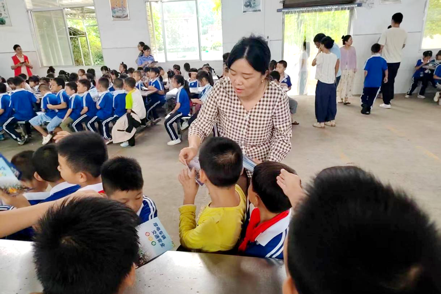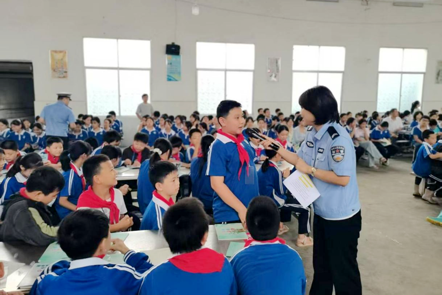 活动开始,县政府办公室副主任易丽珍带领各部门工作人员给学生发放安全知识宣传册。接下来,在活动现场,各部门工作人员结合学生年龄特点与日常安全隐患,用通俗易懂的语言和真实案例展开讲解。交警叔叔重点围绕交通信号灯识别、过马路“一停二看三通过”、骑行安全等内容,通过情景模拟让学生直观感受交通违规的危害;卫健局工作人员则聚焦健康防护,讲解了秋冬季常见传染病预防、日常卫生习惯养成等知识,引导学生关注自身健康;公安干警针对校园欺凌、防诈骗等风险点,传授实用的应对技巧与自救方法,帮助学生树立“安全第一”的意识。