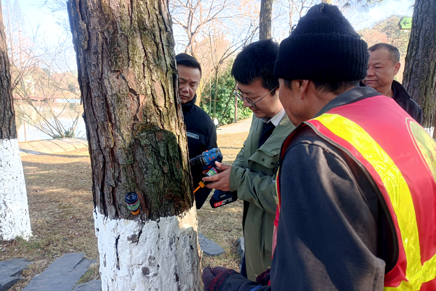 县林业局组织专业施工队伍,加强现场技术指导,严格按规程操作,抢抓冬季防治窗口期,全力推进打孔注药工作,预计于2026年2月前全面完成。