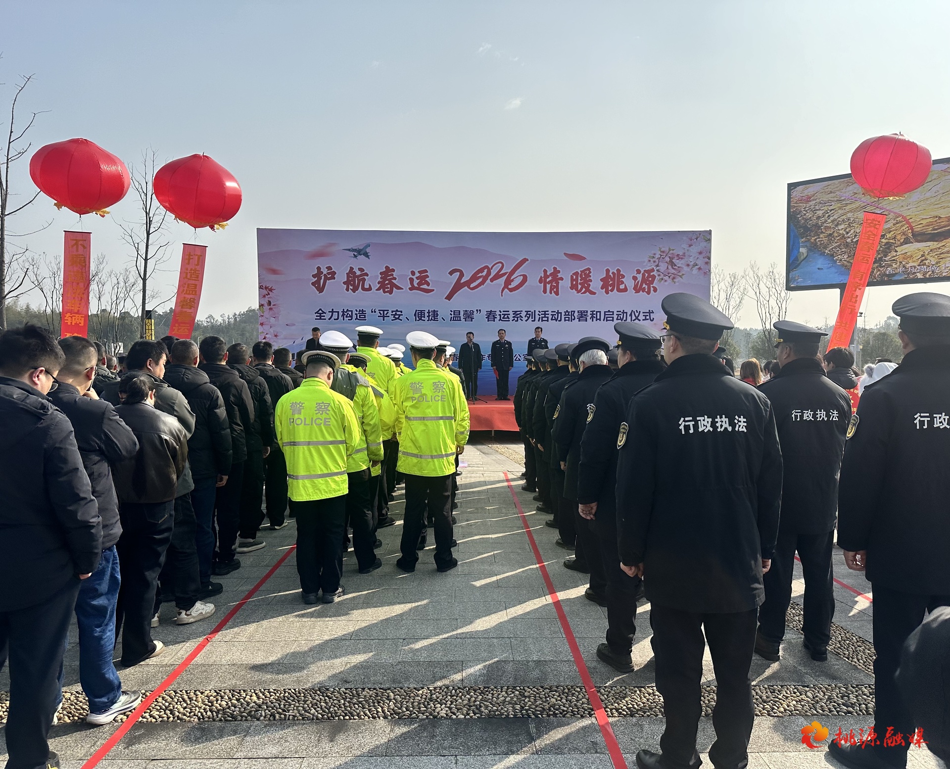 2月2日下午,桃源县“护航春运 情暖桃源”春运系列活动启动仪式在桃源火车站站前广场举行。2026年春运自2月2日开始至3月13日结束,为期40天。副县长康少兵出席仪式并讲话,副县长、县公安局局长毕涛宣布活动正式启动。