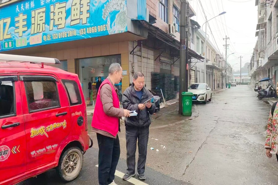志愿者向群众发放宣传资料