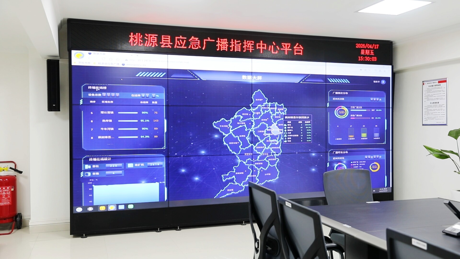 为确保全县应急广播系统在汛期能安全稳定运行,桃源县组织应急广播专业技术人员分批次、分区域对全县29个乡镇(街道)413个村(居)的3122组应急广播进行系统地巡查检修。与此同时,依托应急广播指挥中心的智慧平台,对全县所有广播设施设备的运行情况进行实时监测,一旦发现设备离线、信号异常等问题,第一时间展开抢修,做到“早发现、早处置、早修复”。今年以来,全县已累计维修收扩机120台,维修IP话筒5台,排除网络故障18起。目前,终端在线率达到了91.8%,相较以前提高大约2个百分点,有效保障了应急广播系统的畅通高效。不仅如此,桃源县还推动应急广播系统与县应急管理局、水利局、气象局等部门深度对接,实现了气象预警、防汛指令等信息的快速共享、精准播发,让预警跑在汛情前。