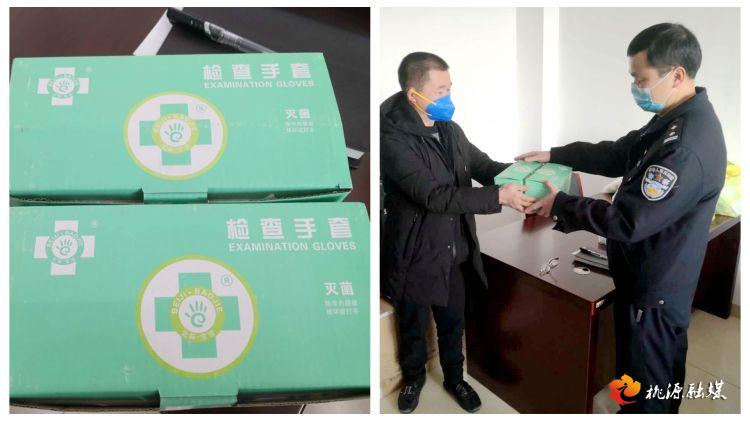 无独有偶,当天下午,县城二里岗社区卫生室医生小宋从微信中看到设卡排查的民警徒手为进入桃源的人员测量体温,作为医务工作者,他感到这是很危险,随时都有受感染的可能。于是,他和妻子商量并一道将家中仅存的100副医用手套无偿送到了公安局。他说:“我知道隔离方面的知识,这些手套能减轻一线工作人员接触的机会,我是桃源人,我要为桃源的平安尽一份心”。