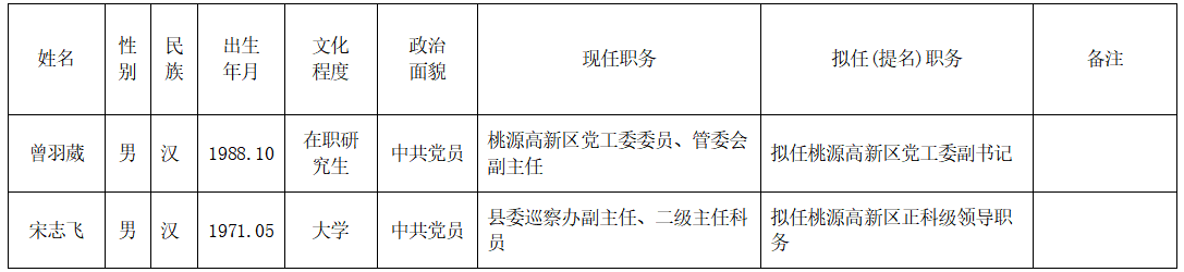 中共桃源县委组织部关于领导干部任前公示的公告2022年(第2号)