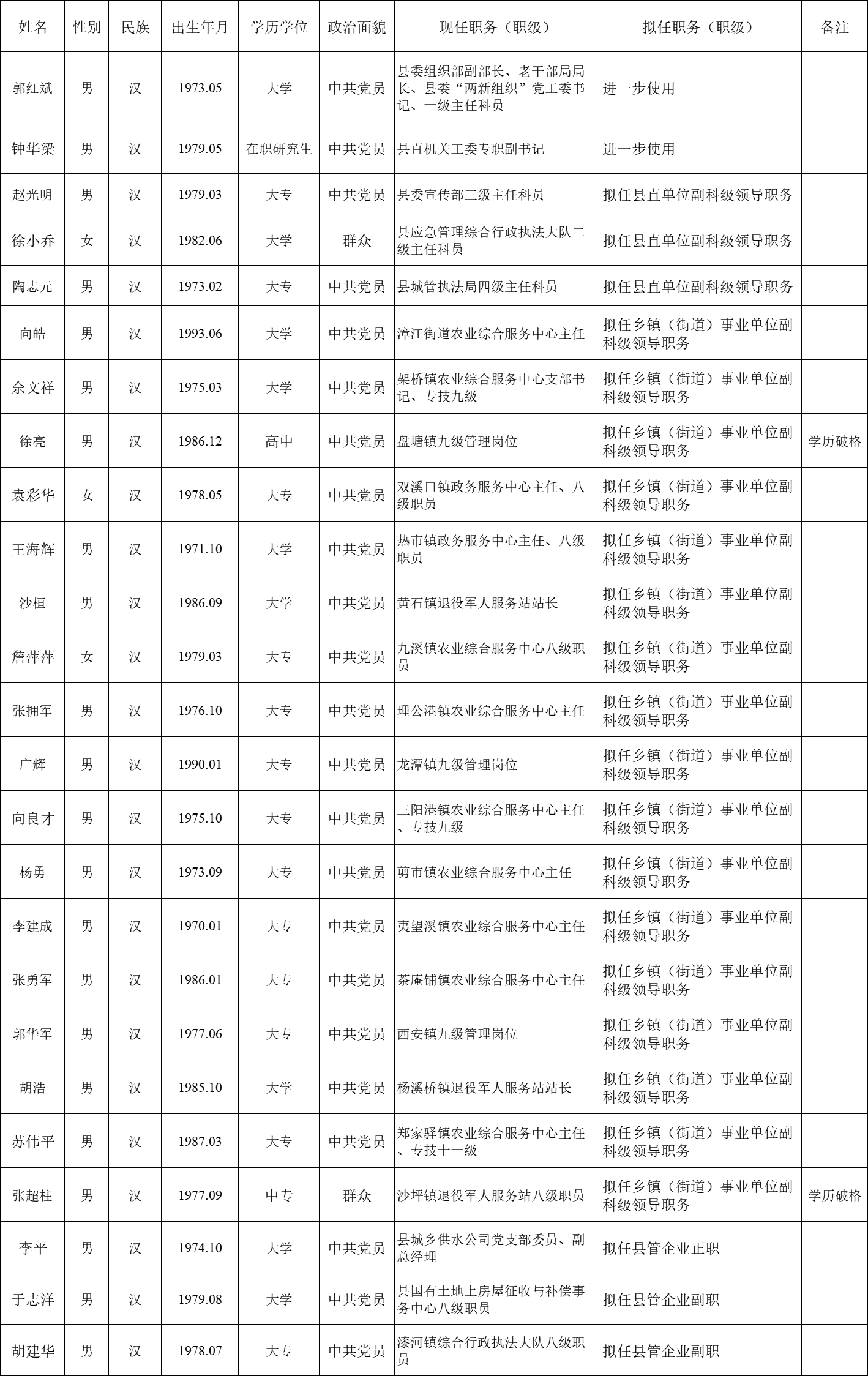 中共桃源县委组织部关于领导干部任前公示的公告 2024年(第5号)