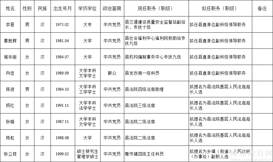 中共桃源县委组织部关于领导干部任前公示的公告 2024年(第9号)