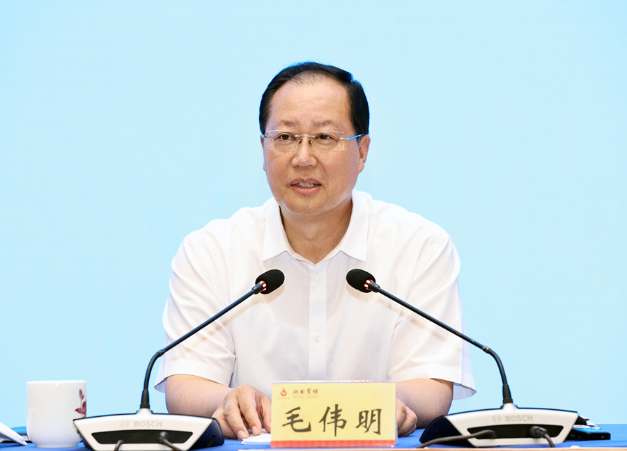 7月15日,湖南省人民政府第八次全体会议在长沙召开。省委副书记、省长毛伟明在会上讲话。