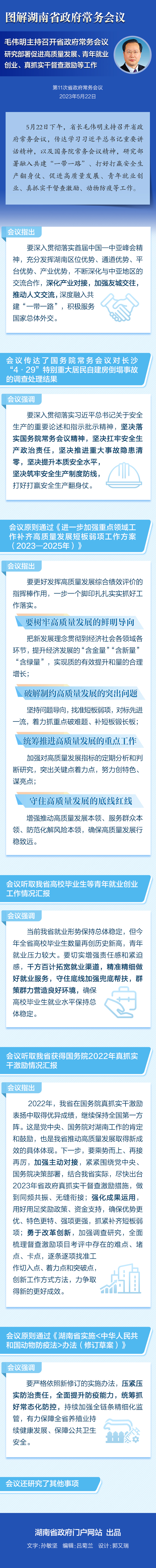【图解】5月22日省政府常务会议:研究部署促进高质量发展、青年就业创业、真抓实干督查激励等工作 来源:湖南省人民政府门户网站 发布时间:2023-05-23 16:28 【字体:小 大】 扫一扫在手机打开当前页 分享到: 【打印正文】