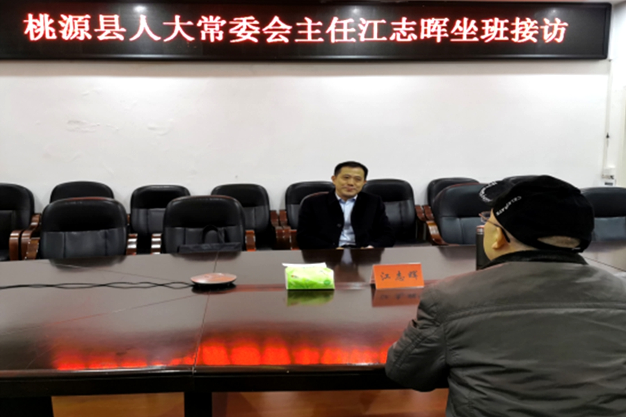 3月12日,县人大常委会主任江志晖到县信访局调研全县信访工作情况并坐班接访。