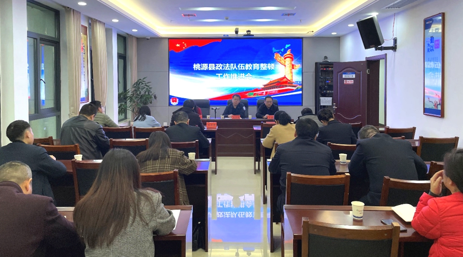3月16日下午,桃源县召开政法队伍教育整顿工作推进会,传达落实省七指导组指示精神。县委常委、政法委书记、县教育整顿领导小组副组长陈会龙要求,要迅速传达学习省七指导组的指示要求,对指示精神要原原本本传达贯彻到每名干警;要迅速落实整改好指导组交办的工作任务,制定好任务清单,明确责任人员和落实期限;要迅速推进好教育整顿的重点工作,完善组织保障、教育整顿各项活动方案和学习计划;要做到“三个坚持”三个结合”,严肃认真、真抓实干推进教育整顿工作。