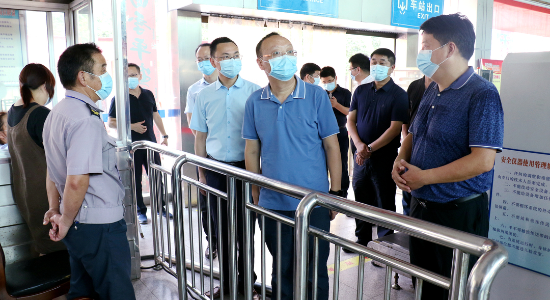 (市委常委、市纪委书记、市监委代理主任何艺辉,县委书记庞波在县汽车总站检查)