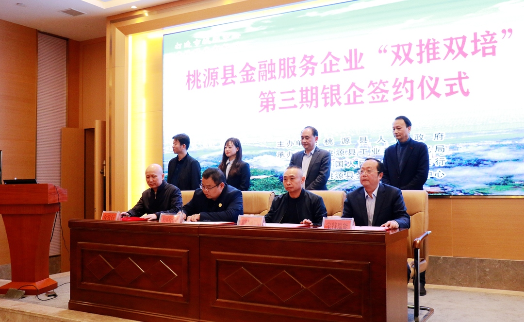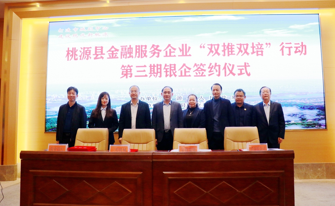 11月12日,桃源县金融服务企业“双推双培”行动第三期银企签约仪式举行。6家银行与12家企业现场签约,签约金额达8.62亿元。县委副书记、县长马吉云见证签约并讲话。