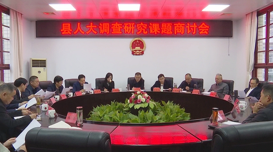 11月18日上午,县人大召开调查研究课题商讨会。县人大常委会党组书记、主任江志晖主持会议。