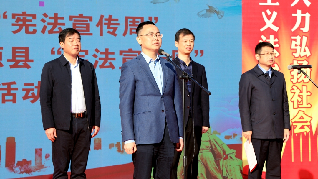 在第八个国家宪法日(12月4日)来临之际,今天上午,常德市“宪法宣传周”集中宣传活动暨桃源县“宪法宣传周”主场活动在县文体中心启动。县委书记庞波出席启动仪式并宣布活动启动,市司法局党组书记、局长王鳌出席并致辞。