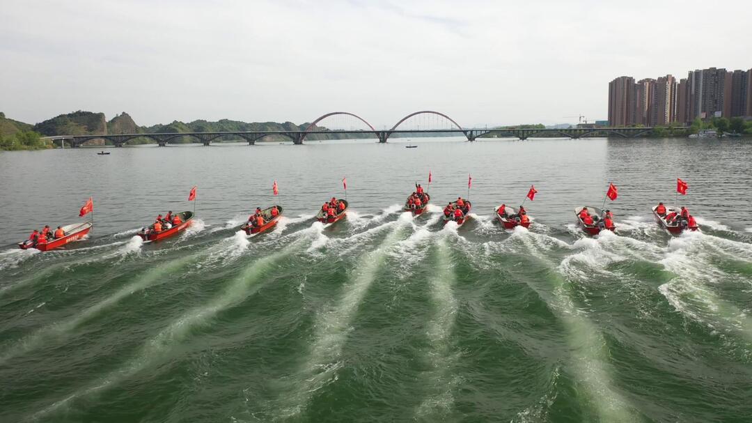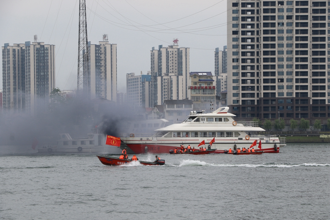 随时能战、全时待战。4月29日,"沅澧-2022"常德市军地应急力量联合防汛抢险演练在桃源县双洲公园附近水域举行。