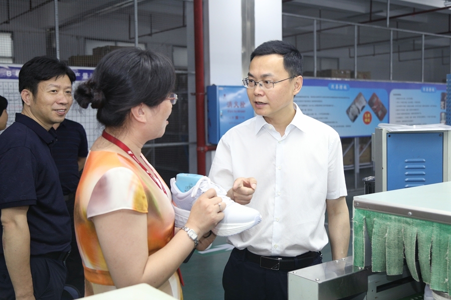县委书记庞波在湖南嘉泰鞋业有限公司走访