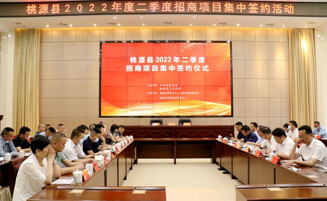6月23日上午,桃源县举行2022年二季度招商项目集中签约仪式,11个项目签约总金额达29.75亿元,涉及电子信息、新能源、运动用品、机械制造、生物科技等多个领域。县委副书记、县长马吉云出席仪式并讲话。