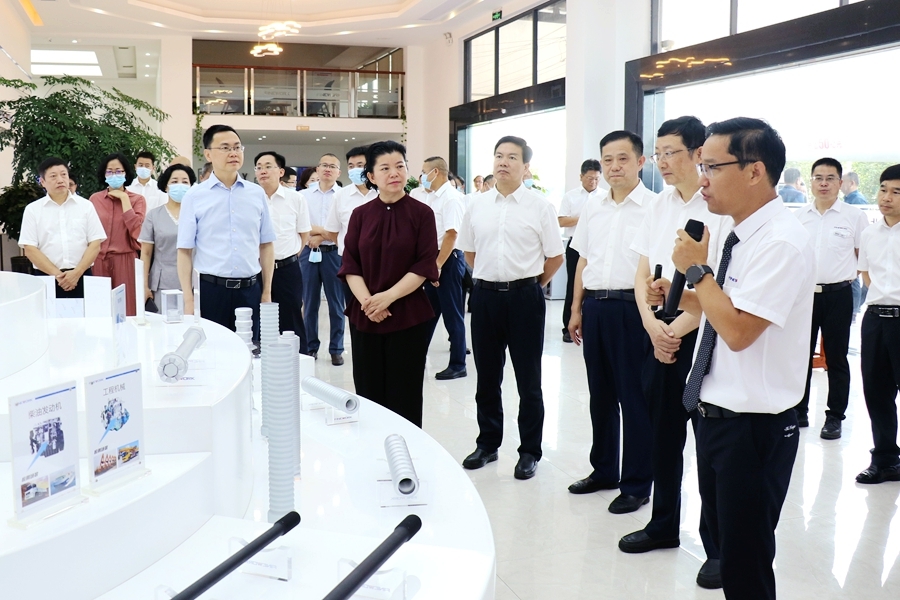 在湖南飞沃新能源科技股份有限公司,视察人员走进企业产品展区、生产车间、实验室等地实地参观,详细了解企业生产、经营、产品创新以及创业带动就业相关情况。湖南飞沃新能源科技股份有限公司是一家专业从事高强度紧固件研发制造,并提供系统解决方案的高新技术企业。2018年获得工信部智能制造试点示范企业、2019年获得工信部首批"专精特新“小巨人”企业"、中国造隐形冠军等多项国家级荣誉,其产品主要应用于风电、高铁、汽车、工程机械等领域,其中风电叶片预埋螺套这一非标紧固件,在全球风电紧固件细分市场占据70%市场份额。