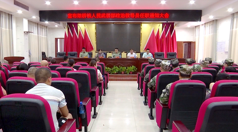 8月25日上午,架桥镇召开武装部政治教导员任职大会。县委常委、县人武部政委周军宣读了任职通知并颁发任命书,任命架桥镇党委书记张巍为镇武装部政治教导员。