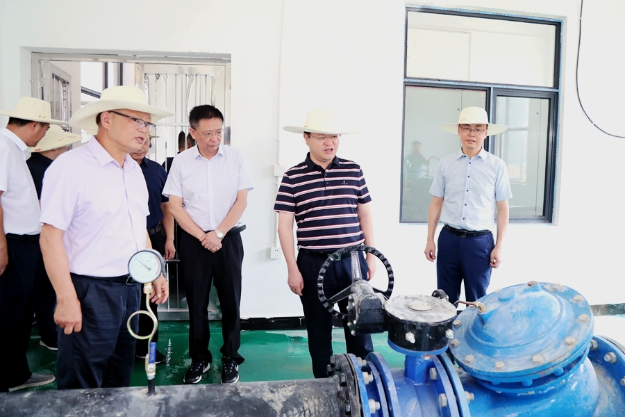在九溪卓家桥机埠,周振宇现场查看了卓家桥泵站当前流量、库存水量、机器设备运行、提质改造、提水灌溉等情况。今年抗旱期间,卓家桥泵站累计提灌抽水达12天,直接受益面积达2200亩。