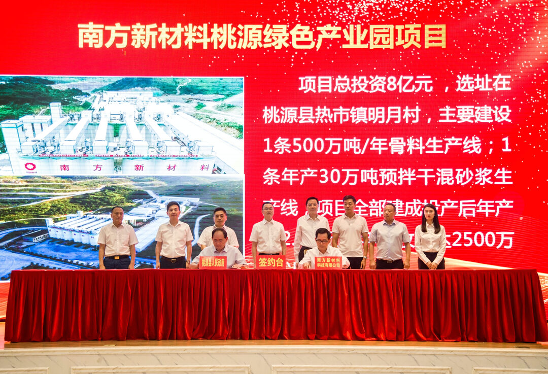 南方新材料桃源绿色建材产业园项目总投资约8亿元,选址在桃源县热市镇明月村,主要建设1条年产500万吨骨料生产线,1条年产30万吨预拌干混砂浆生产线。项目全部建成投产后,可实现年产值2.8亿元,年创税收5000万元以上。