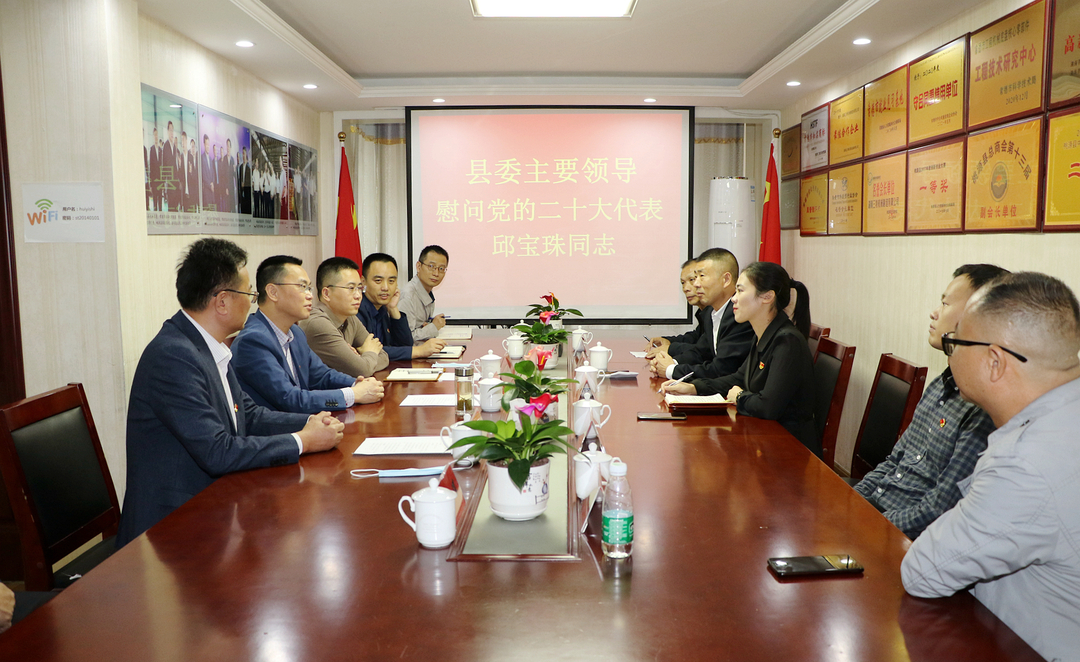 10月24日下午,常德市人民政府副市长、桃源县委书记庞波前往湖南三特机械制造有限公司,看望慰问党的二十大代表、公司员工邱宝珠。
