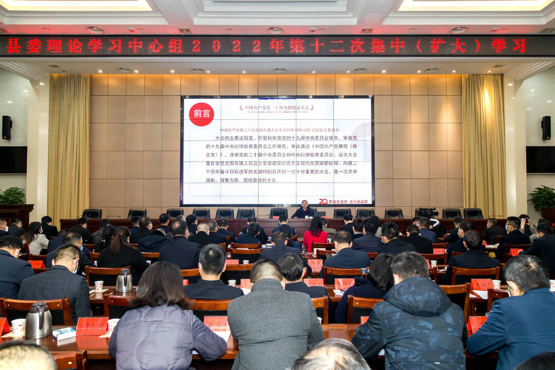 结合本次学习内容,就学习贯彻落实党的二十大精神,庞波强调,要学深悟透,用党的二十大精神武装头脑。要突出关键重点。全县党员干部要把学习宣传贯彻党的二十大精神作为当前和今后一个时期的首要政治任务来抓,按照“五个牢牢把握”的要求,深刻领会党的二十大精神,争当“两个确立”的坚定拥护者、“两个维护”的忠诚实践者。要聚焦关键少数。领导干部要坚持先学一步、深学一层,带头做好宣讲工作,当好党的二十大“宣传员”,以“关键少数”带动“绝大多数”。要把握关键方法。坚持原原本本学、逐字逐句学,联系实际学、入脑入心学,拓宽学习渠道和方式,推出形式多样的宣讲活动,把党的二十大精神送到千家万户。要学出成效,用党的二十大精神推动工作。要学出绝对忠诚。自觉做到党中央提倡的坚决响应、党中央决定的坚决执行、党中央禁止的坚决不做。要严格执行《重大事项第一时间报告制度》,不断提高责任心、敏锐性、执行力。要学出过硬作风。将学习党的二十大精神与作风建设大提升活动相结合,各级领导干部要按照“赋全权、负全责”的原则,大胆负责、大胆履职,切实为县委县政府分忧解难。要学出能力本领。不断提高抓经济发展的综合能力,抓本职业务的专业能力,应对复杂局面的处突能力,敢于迎难而上的斗争能力,努力成为各项工作的行家里手。要学以致用,用党的二十大精神指导实践。要抓好收官结账。各单位要对照年初目标任务全面梳理,抢抓时间全面赶超,坚决完成全年既定工作目标。要抓好创先争优。对照要求查漏补缺、主动对接汇报、积极争取支持,确保各项考核进入省市先进。要抓好统筹谋划。要对照党的二十大提出的战略目标与宏伟蓝图,密切关注中央和省市最新要求,结合县委相关《决定》,抓紧研究制定切实可行的目标任务,做到精准部署、精细推进、精确落实。