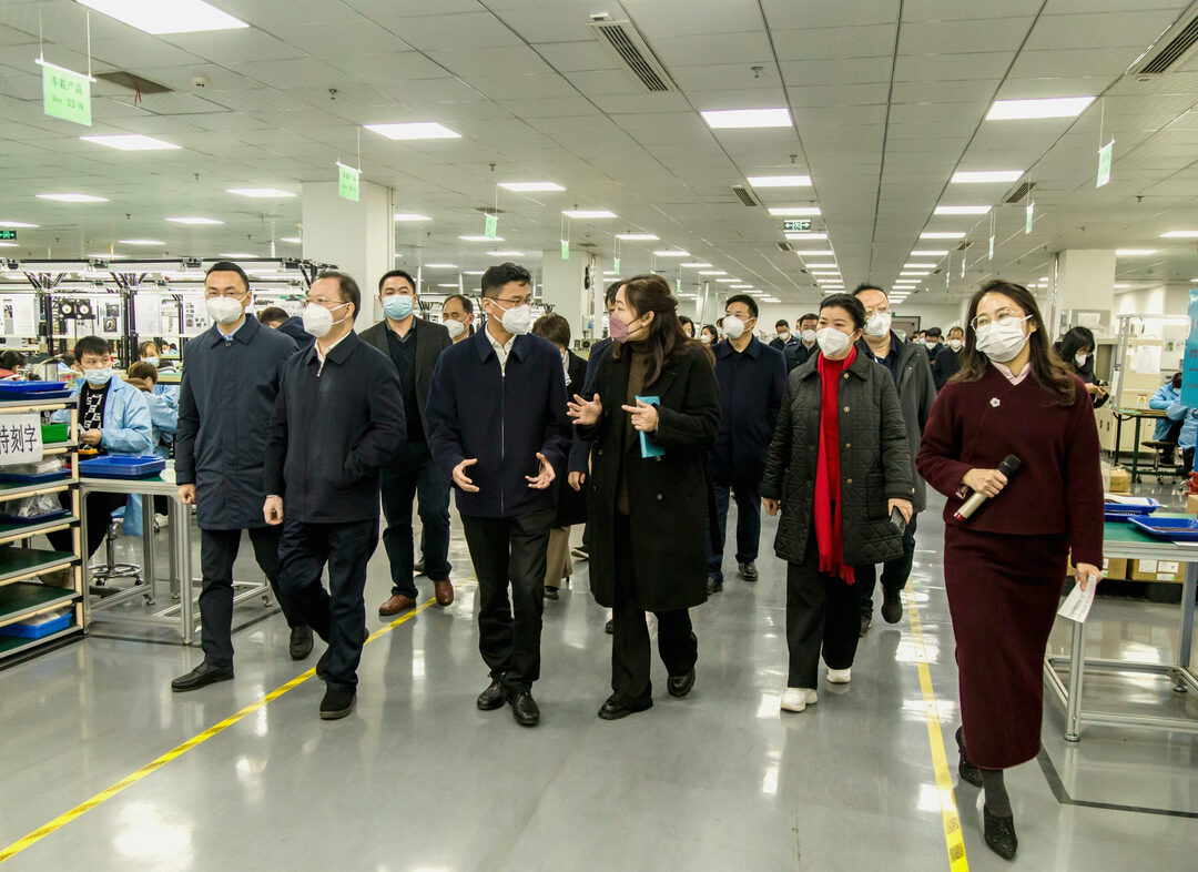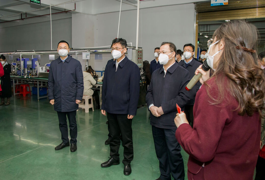 曹志强一行走进声临电子公司生产车间