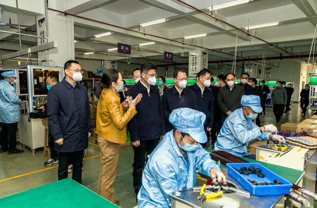 曹志强一行走进金磁电器公司生产车间