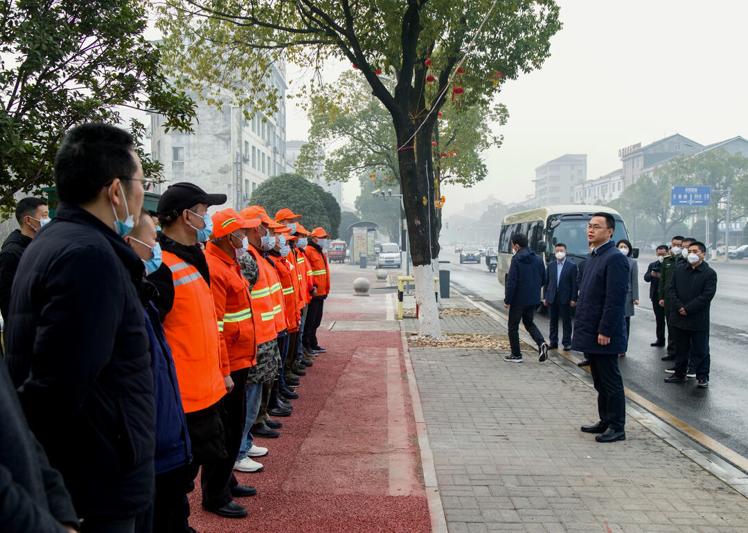 在县城桃花大道,庞波看望慰问了正在进行卫生清扫保洁的一线环卫工人。对他们一年来辛苦劳动表示感谢,同时叮嘱他们工作时要注意安全、保重身体,并祝他们新年快乐、家庭幸福。