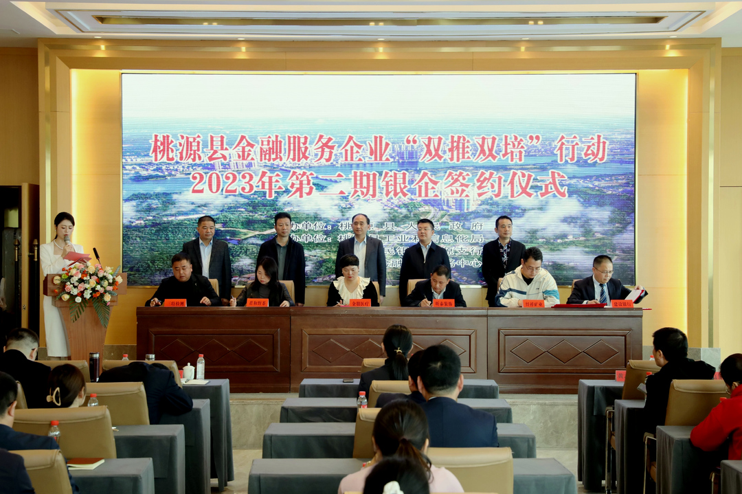 政府搭台,银企唱戏。11月22日上午,桃源县金融服务企业“双推双培”行动2023年第二期银企签约仪式举行,现场签订合约30份,28.46亿元“金融活水”精准浇灌企业,共同助推桃源经济社会高质量发展。县委副书记、县长马吉云出席活动并讲话。