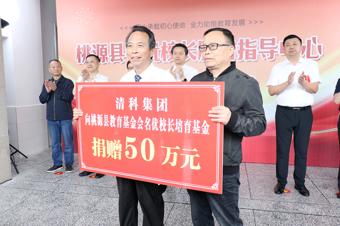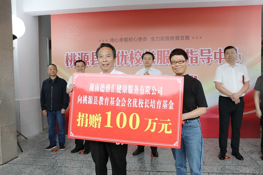 揭牌仪式上,湖南德雅汇健康服务有限公司、清科集团向桃源县教育基金会名优校长培育基金分别捐赠100万元、50万元。