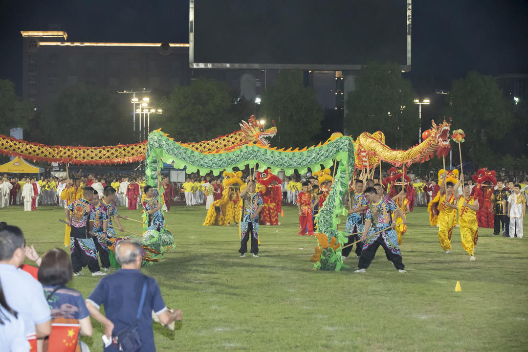 随后,鼓声激昂、震撼人心的开场鼓《中国龙》拉开了气势宏大的文艺展演。依次进行了舞龙舞狮表演和声势浩大的太极拳《春暖桃花源》、广场舞《全民健身跳起来》,每个表演者都精神饱满、意气风发,每个节目都彰显了桃源人民热爱运动、全民健身的浓厚氛围,充分展现了“奋进桃源、欢乐桃源、健康桃源、幸福桃源”的主题。开幕式最后在全场齐声同唱《歌唱祖国》的歌声中落下帷幕。