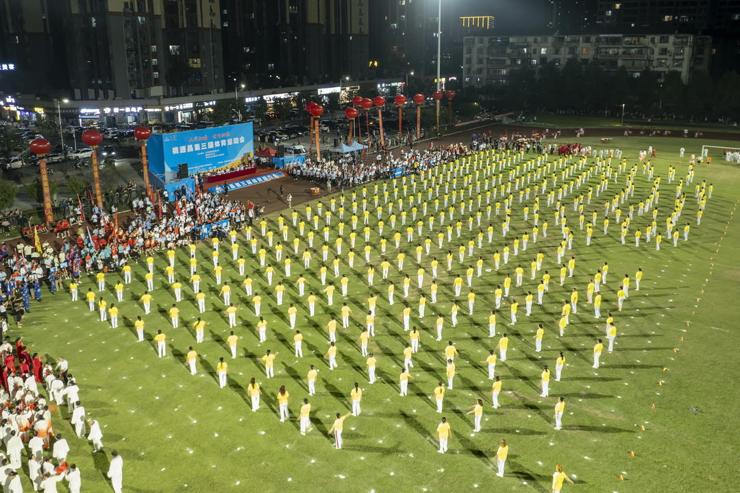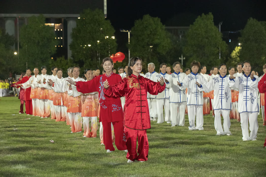 夜幕下的县文体中心田径场华灯璀璨、热闹非凡。19点08分,开幕式在万众期待中正式开始。伴随着《运动员进行曲》的昂扬旋律,8名旗手高举鲜艳的五星红旗和县运动会会旗健步走入体育场。随后,16个方阵、53支代表队,迈着铿锵有力的步伐依次通过主席台。