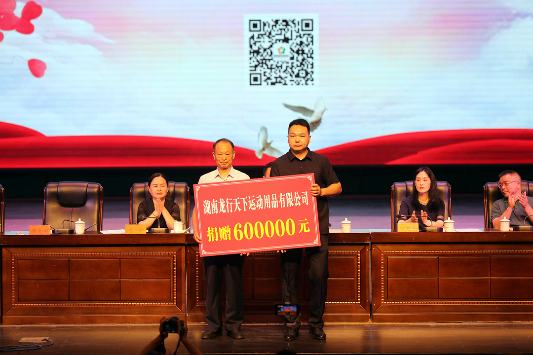 在爱心捐赠环节,湖南龙行天下运动用品有限公司、湖南飞沃新能源科技股份有限公司、湖南迪文科技有限公司、湖南艾布鲁环保科技股份有限公司、木塘垸镇商会筹备组、湖南绿韵环境科技有限公司、上海合金汇盈资产管理股份有限公司、爱心人士王建波、湖南桃花源建设有限公司、常德市富斯特液压油缸有限公司、湖南桃源水电工程建设有限公司、湖南弘基建设有限公司等爱心企业、爱心人士现场捐赠210万元。