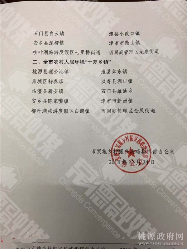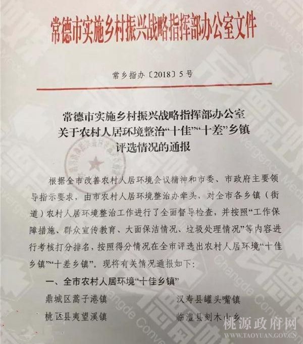 动真格了!常德农村人居环境“十佳”、“十差”乡镇名单出炉,桃源哪些乡镇上榜?