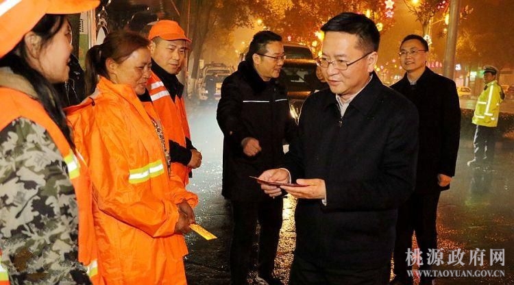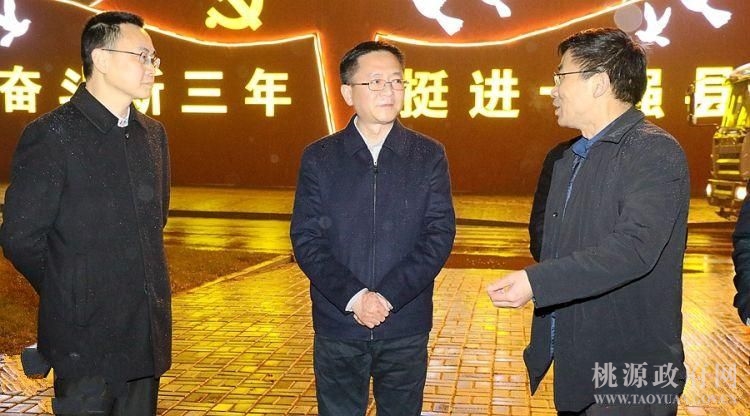 小年夜,桃源县城张灯结彩,车水马龙。县委书记周代惠对春节期间县城亮化、美化、保洁、保畅工作进行了督导检查。县长庞波参加督导检查。