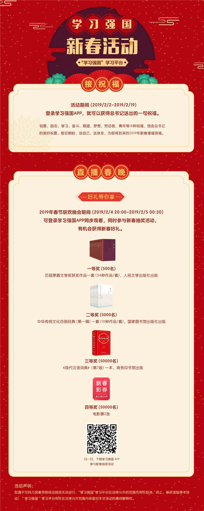 接祝福,抽好礼!“学习强国”学习平台2019春节活动预告